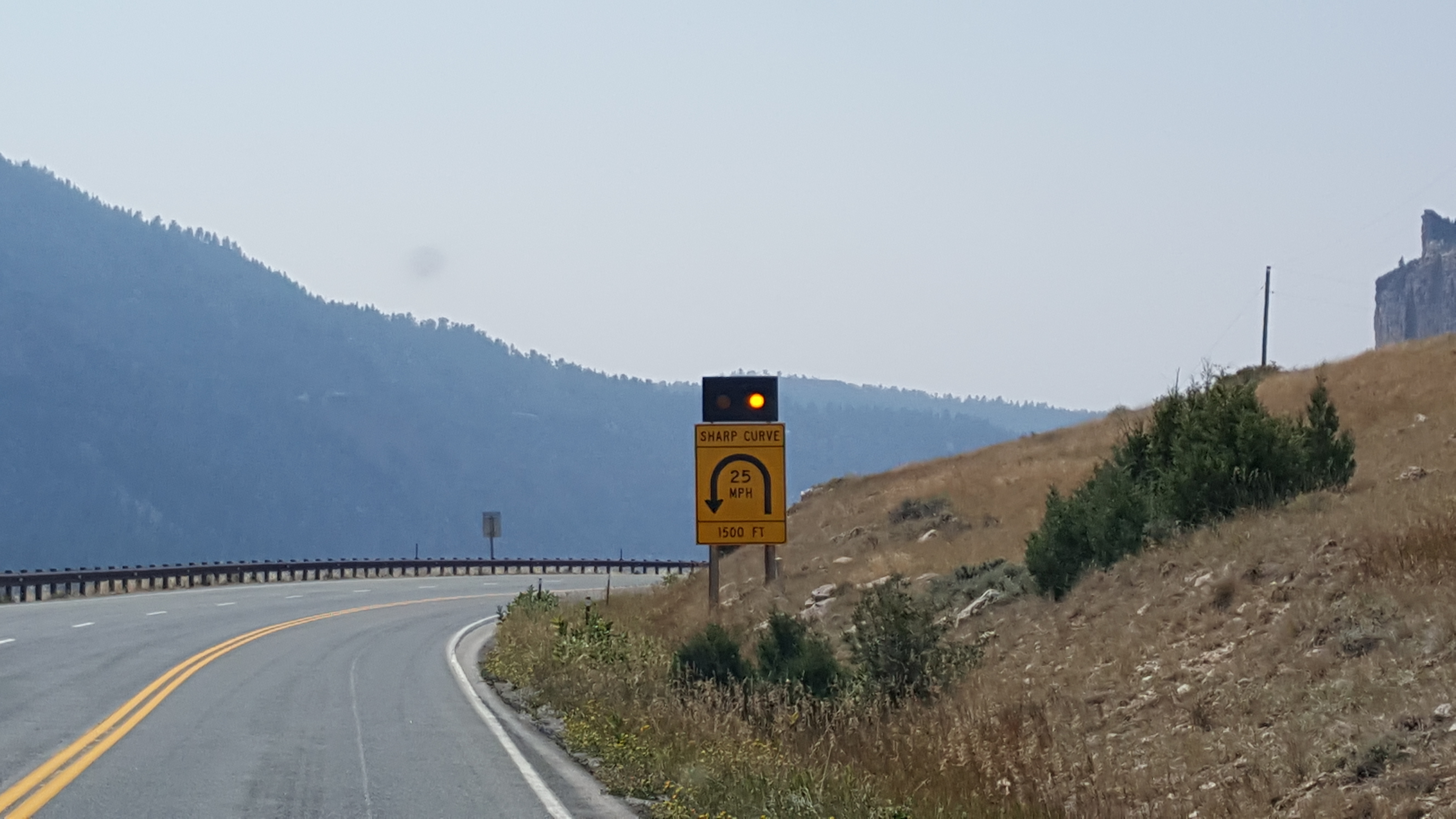 Leaving town, we headed into Bighorn National Forest, where the road ascends to nearly 10,000 feet. Downshifting gears helped, but we could still smell the brake pads burning as we made our way down and around these mountains.