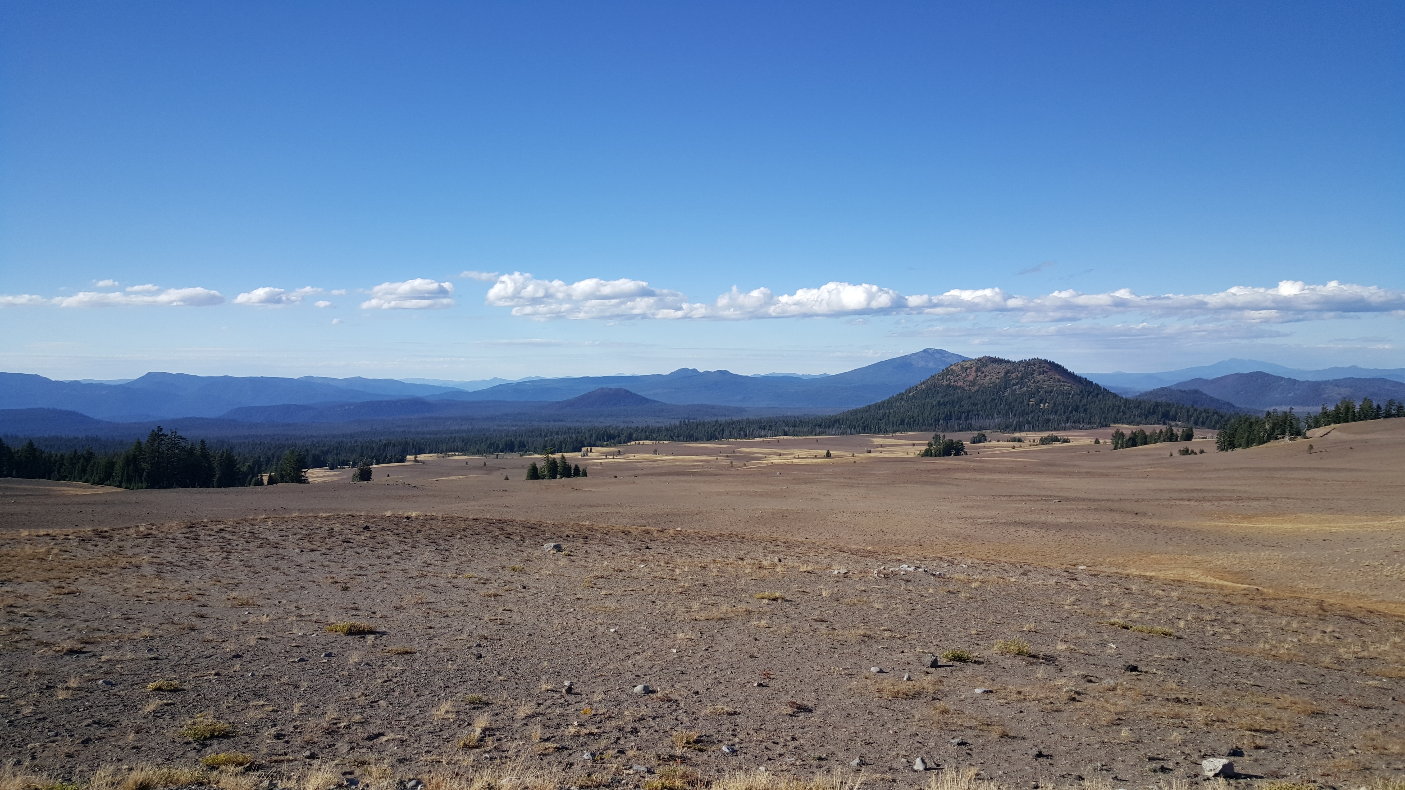 At the Crater Lake entrance, we were cautioned that a fire was still smoldering in the park. We might come upon smoke or flames or fire fighters, signs read. No fires at the beach, I thought. But we’d come this far and it was only mid-afternoon when we began to climb up the mountain, driving through wooded areas and then by a dry barren area that looked like some sort of moonscape.
