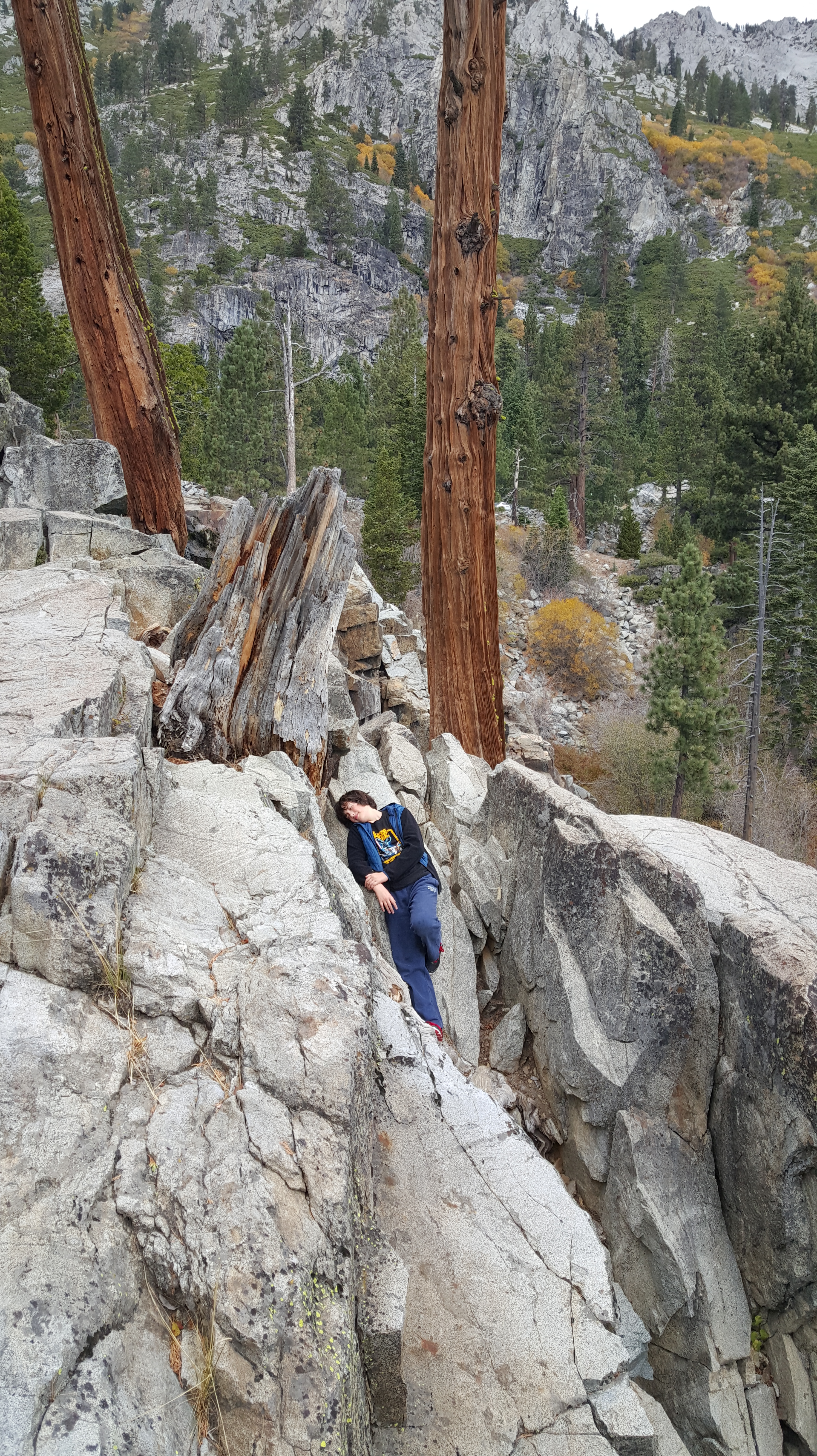 The weather our first day was perfect for sightseeing so we toured various spots around Lake Tahoe. We started at the shores of the lake, which feels a little like Lake MacDonald in Glacier with its rocky beaches and calm blue waters. The third deepest lake in North America, Tahoe is 1,600 feet down in some places, 95 feet below the elevation of nearby Carson City, NV. Driving up the mountain, past 10,000 feet, the view down is either thrilling or terrifying depending on your comfort with heights. Either way, it’s stunning, with Tahoe’s red-brown Jeffrey pines jutting out from granite boulders all the way to the blue bottom.