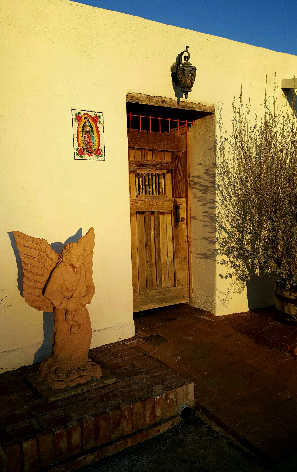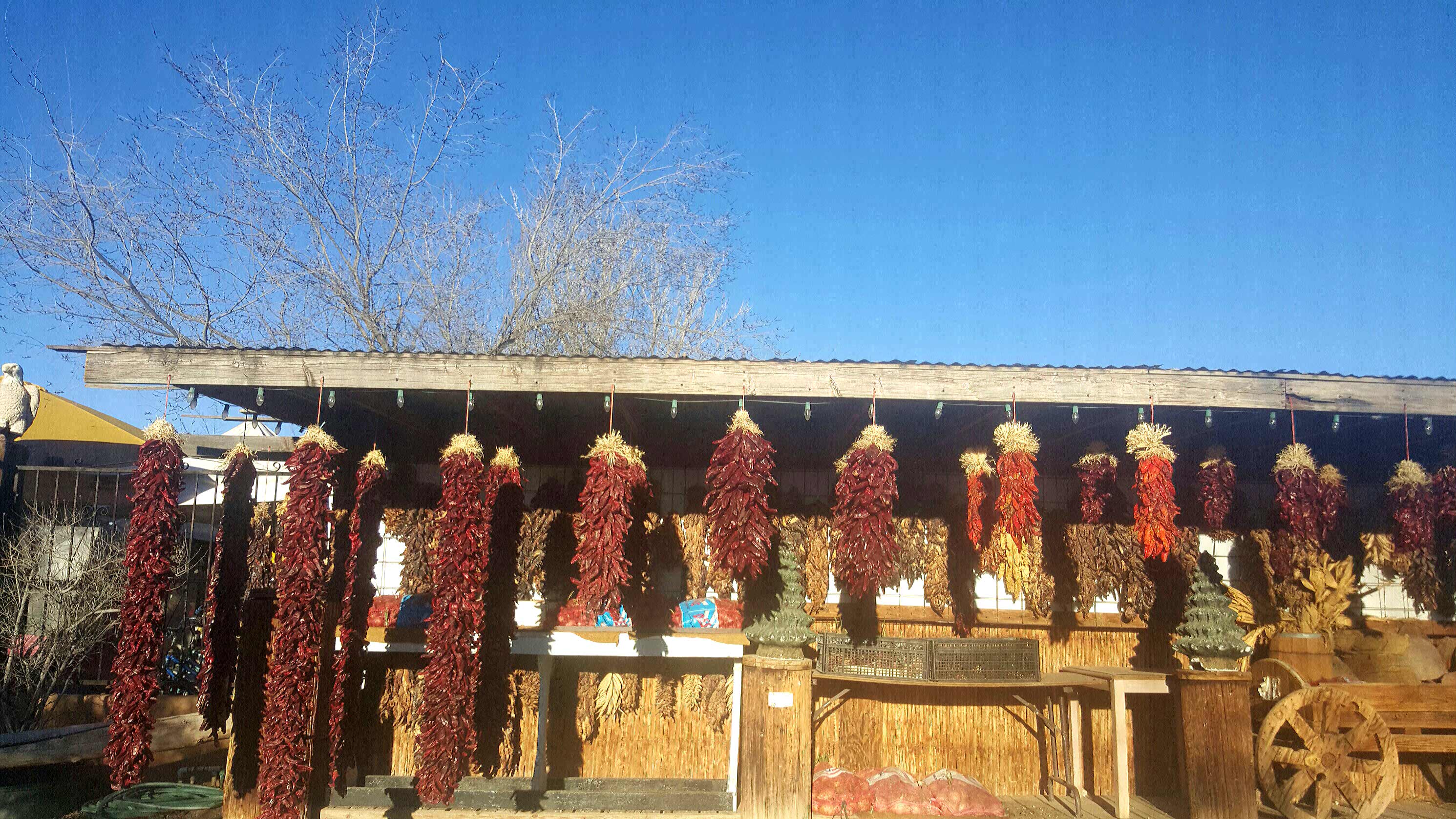 Today, Mesilla is quaint with its rustic wooden and adobe buildings, chile ristras hanging in every doorway. The plaza and its stores are a lovely display of folk New Mexico. A half mile away, in our RV park, we see another poorer side that we know reflects more of the state.