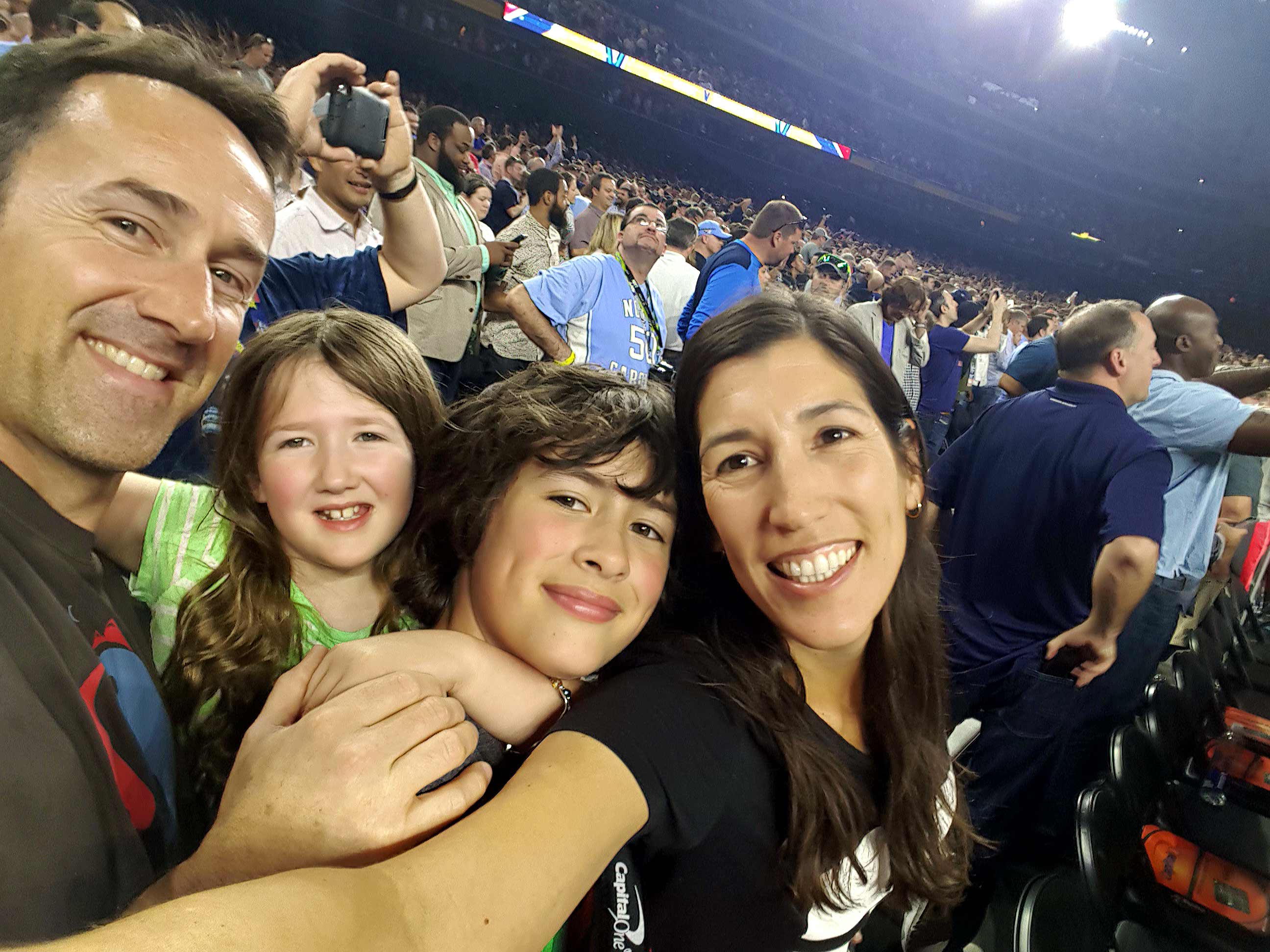 We were glad to see the Space Center (although the Smithsonian’s Air & Space Centers at home are better), but we were even more excited for the next night, when we drove into the city to meet up with friends at their hotel and then shuttle over to the NRG center for the NCAA Championship game. We had crossed Houston off our list, actually, until Gloria and Rick (first of Spooky, Snowy Tahoe and then of Rose Bowl) hooked us up with tickets for this final game between Villanova and North Carolina. It is something we never would have done otherwise. The pomp and popularity of this collegiate event is astounding; everything imaginable is adorned with the university logos, and the stadium, meant for football, is so large that people were renting binoculars to view the game from their seats. Our seats, which were great and required no special viewing equipment, were near Villanova fans in what was a decidedly UNC-favoring crowd (there were Jordan jerseys everywhere, as well as Michael Jordan himself). So we were leaning for Villanova even before they announced that three of their players were from Maryland. We cheered for Villanova throughout, throwing up our hands (and in the case of Elian his seat cushion) when they hit an amazing buzzer-beater shot to win one of the best basketball games we’ve ever seen. Even better that the shot was made by Kris Jenkins, a player from DC’s Gonzaga High School who was coached by an old friend from Silver Spring. Gg said she felt badly for the other team and we were sorry we couldn’t buy the UNC championship t-shirt for a former student who’d asked us to get one if UNC won, but we were all very happy for the winning team, and grateful to add the Final Four to our BigTrip experience.